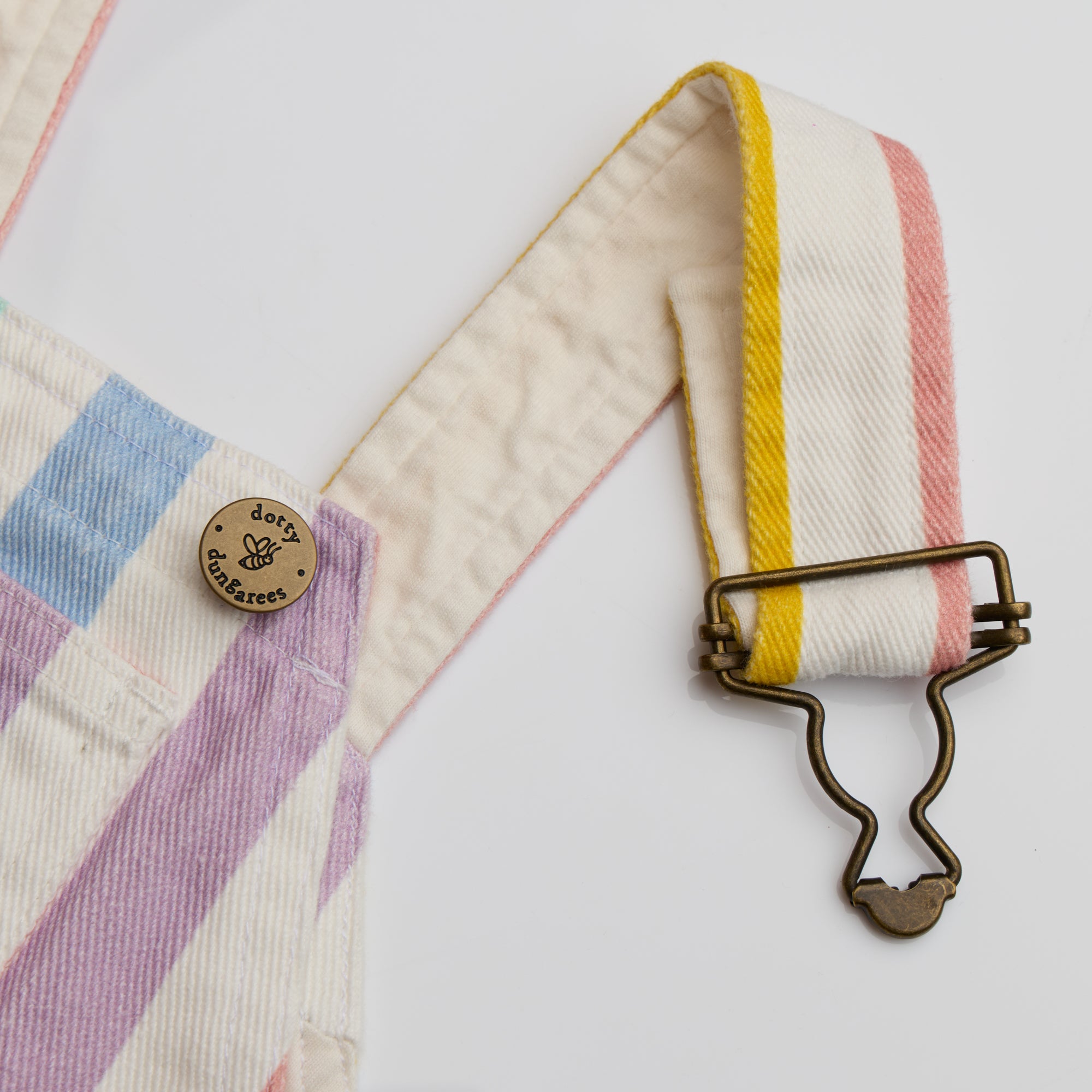 The Rainbow Wide Stripe Denim has been one of our all-time bestselling colours — and this season, it’s making a comeback in our signature Dungaree Dress. Bright, cheerful, and timeless, it’s the perfect style for summer adventures, from beach strolls to family picnics.